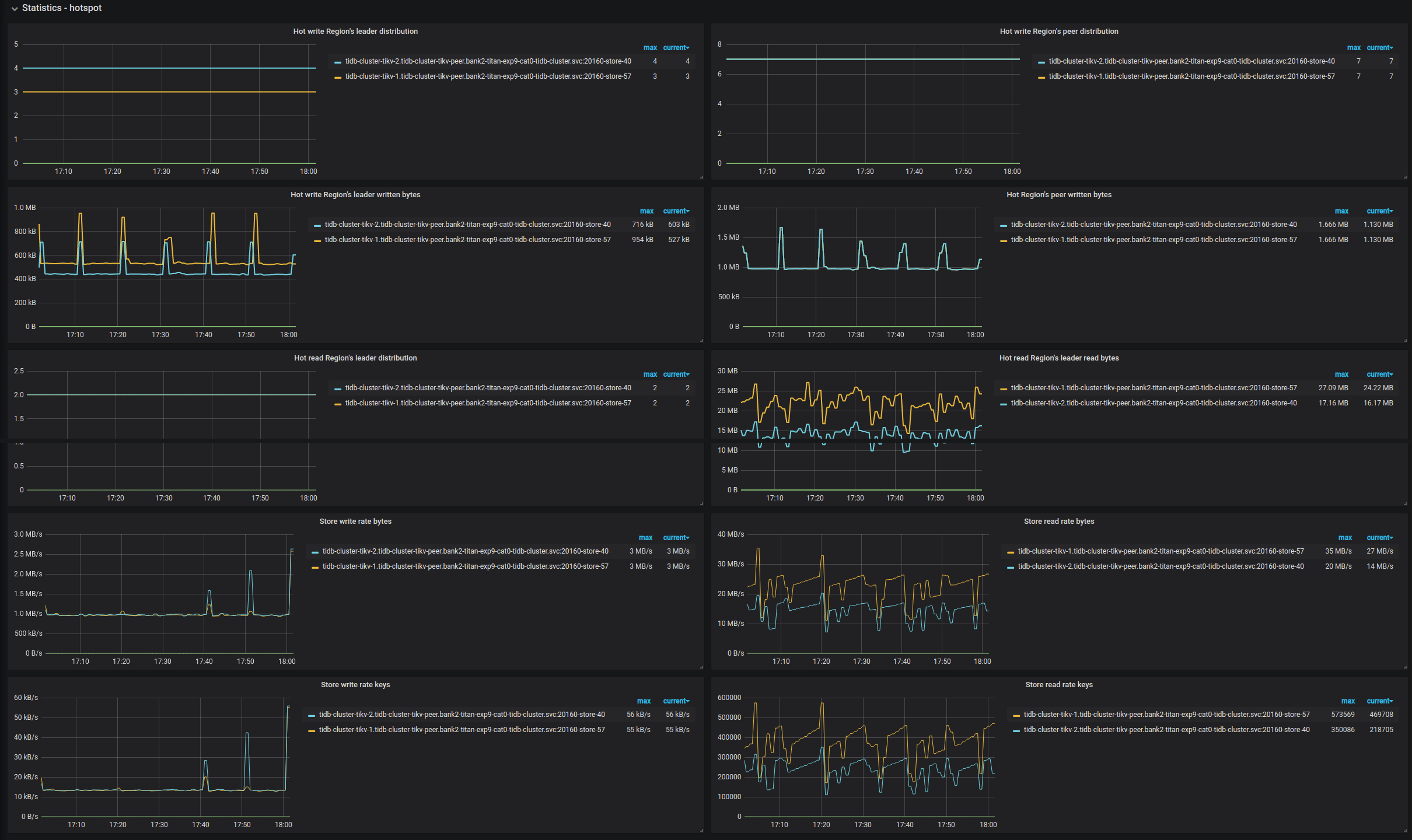 | Statistics - Hotspot | Peer written bytes in hot write Regions | The total bytes of hot write on peer Regions per each TiKV instance | |